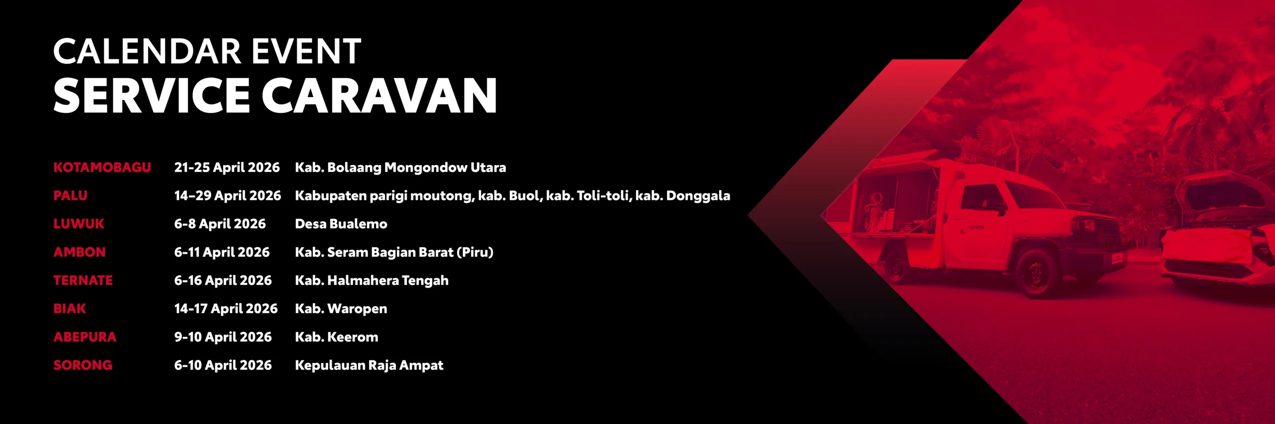 Pusat Layanan Dyna, merupakan salah satu layanan khusus untuk unit Toyota Dyna yang dapat melakukan kunjungan dimanapun Anda berada.